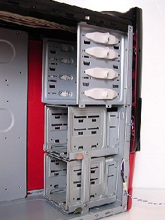 3,5"-ős eszközöket két fiókban rögzíthetünk amiket a fülek